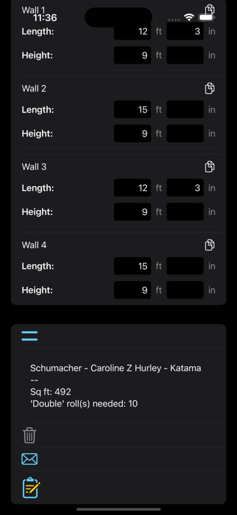 - Total Wall Area: Displays the size of the wall in square feet or meters.