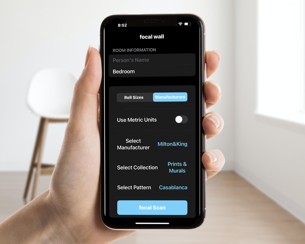 Once the room and wallpaper details are set, the app offers a ‘focal Scan’ button to start scanning your room. The LiDAR Scanner will detect walls and calculate their dimensions.